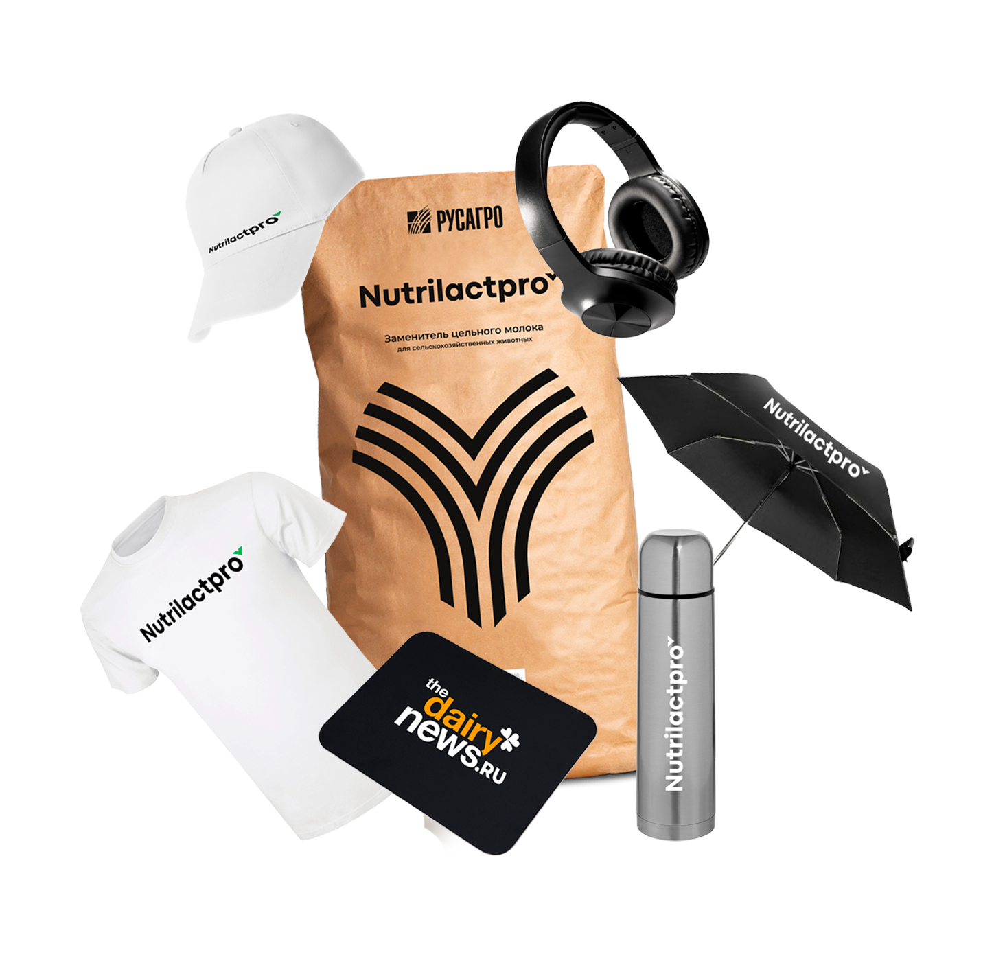 25 кг ЗЦМ* Nutrilactpro, а также мерч от компании "Русагро" и The DairyNews